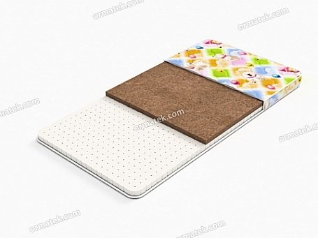 Детский матрас из натуральных материалов со сторонами разной жесткости. Способствует формированию правильной осанки. Более жесткая сторона на основе плиты из кокосовой койры предназначена новорожденным, более мягкая, с натуральным латексом, обеспечит комфортный и здоровый сон малышам постарше. Примечание: матрас средней жесткости для детей до 3 лет.