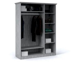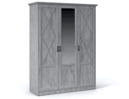 Распашной трехдверный шкаф выполнен в популярном стиле неоклассика – белые рамочные фасады с фактурой и рисунком натурального дерева, декоративные крестообразные накладки, фигурные ножки и карниз все это придает комнате элегантный и светлый вид. Вместительные отделения со штангой и полками поместит в себя верхнюю одежду, коробки с обувью и головные уборы. Мебель выполнена из экологичных материалов.