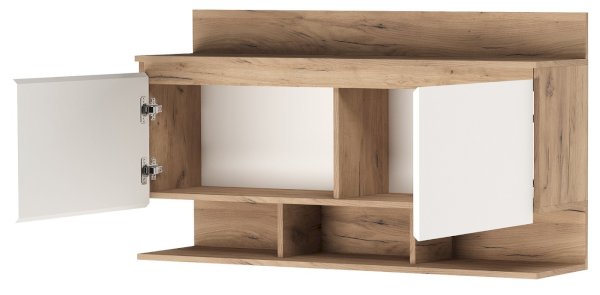 Крепится к стене через навесные элементы. Для удобства открывания и удержания фасада в открытом положении устанавливаются газлифты. Применение интегрированной ручки на фасадах делает модель стильной и безопасной – дверцы открываются за профилированные выступы. Фасады обработаны кромкой 1 мм.