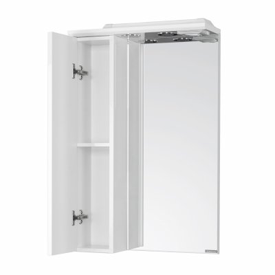 Компактный зеркальный шкаф Панда 50 от AQUATON подходит для ванных комнат со скромными габаритами. Простая и практичная модель отличается стильным современным дизайном. Фасад из МДФ украшен изящной фрезеровкой и покрыт белой глянцевой полиэфирной краской ультрафиолетового отверждения. Корпус модели выполнен из влагостойкой ЛДСП. Верхняя панель оснащена подсветкой, розеткой и выключателем. Справа от зеркала расположен шкафчик для хранения с полкой. Зеркальный шкаф станет идеальным дополнением к тумбе AQUATON Панда 50.