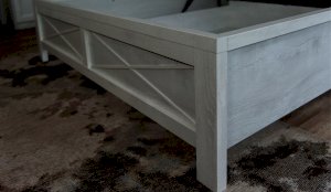 Кровать Лорена – это идеальное решение для интерьера квартиры или загородного дома в стиле неоклассика или прованс. Светлый цвет модного декора «Бетон пайн» с фактурой и рисунком натурального дерева добавят интерьеру уюта и умиротворенности. Высокое изголовье и изножье украшают декоративные крестообразные накладки и фигурный карниз. Надежный подъемный механизм позволит с легкостью убирать постельные принадлежности в объемный бельевой короб.