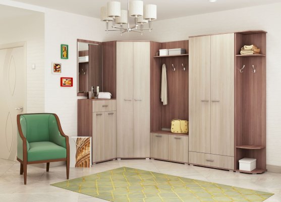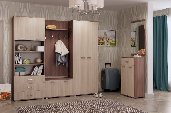 Модульная система для прихожей Италия - это модульная программа, имеющая в своем составе 15 элементов для грамотного обустройства прихожей. Фасады светлых декоров с комбинируются с тёмным корпусом.