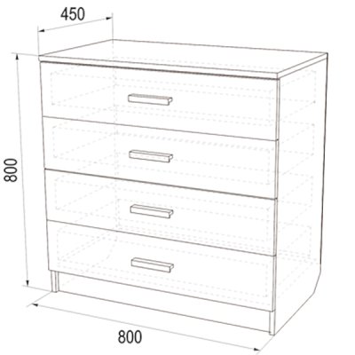 Фурнитура: ручки пластиковые, шариковые направляющие, 4 выкатных ящика