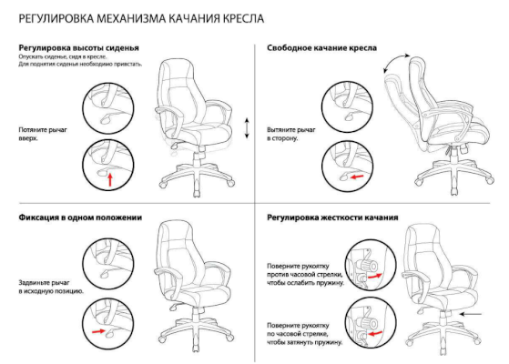 Тип механизма кресла: "топ-ган" качание с регулировкой под вес и фиксацией в 1 положении