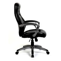 Эргономика обеспечивается высокой спинкой с удобным подголовником, выраженной боковой поддержкой спины, подлокотниками из прочного пластика с противоскользящими накладками.