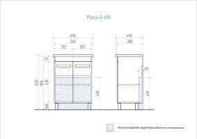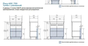 2 дверцы; 1 полка ЛДСП; ручка врезная металлическая хромированная, опоры квадратные регулируемые.