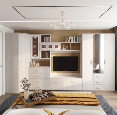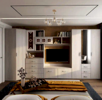 Многофункциональная компактная модульная гостиная «Белла» отлично впишется в интерьер Вашей комнаты и станет украшением любого дома. Сочетая в произвольном порядке модули, Вы можете получить неповторимый дизайн гостиной.  Особый шарм этой модели придает отделка бронзовыми зеркалами с фьюзингом, пескоструйной обработкой и еврокромкой. Вместительные полки для белья, встроенный компактный комод, открытые полки для различных мелочей позволят максимально эффективно использовать пространство.