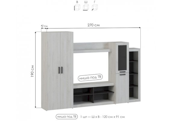 Функционал хранение посуды / хранение одежды / зона для ТВ