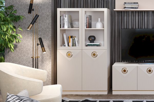 Низкая витрина «Капри» - это очень удобный модуль для открытого хранения за стеклодверками и закрытого хранения различных вещей.
