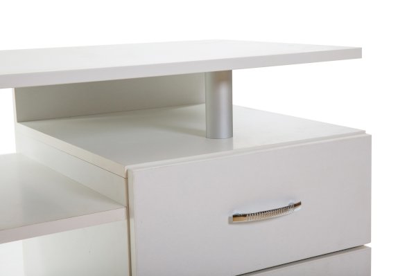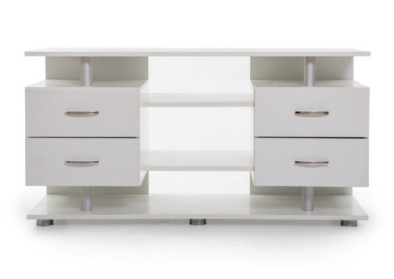 Удобная телевизионная тумба с открытыми полками для аудио/видео-аппаратуры, закрытыми полками и вместительным выдвижным ящиком.