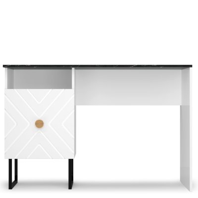 Конструкция модуля включает тумбу и нишу под столешницей, здесь вы сможете хранить необходимые книги или письменные принадлежности. Столешница имеет габариты 1200×550 мм и поместит все самое необходимое для работы, включая компьютер.