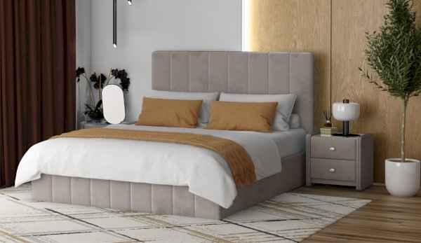 Элегантная интерьерная кровать Оливия – это стильное и оригинальное решение для современного интерьера. Изголовье, декорированное вертикальной стежкой, не только украшает комнату, но и визуально делает потолки выше, создает гармоничное и уютное пространство. Благодаря мягкому наполнению времяпрепровождение в кровати будет необычайно комфортным, а большой бельевой короб поможет рационально организовать хранение белья и постельных принадлежностей.