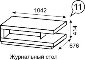 Журнальный стол №11 Дуб сакраменто/Белый снег глянец
