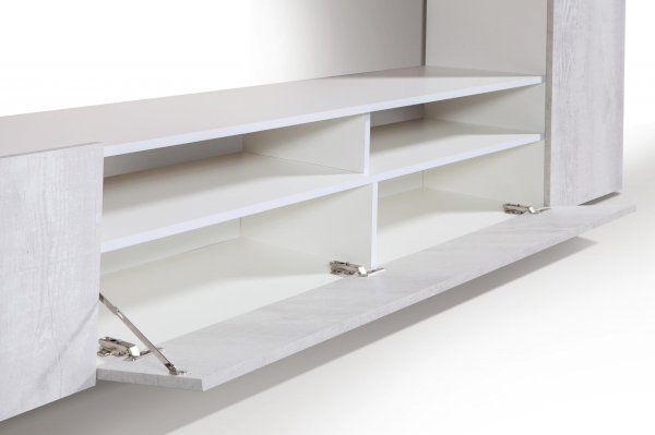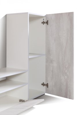 Шкаф «Прага-3» подойдет как для небольшой по габаритам гостиной, так и для просторной. Вместительная тумба под ТВ оснащена двумя открытыми нишами, закрытыми секциями с распашными дверьми по бокам и закрытой секцией с откидной дверью посередине. Навесной шкаф оборудован полкой из ЛДСП, выдерживающей вес до 5 кг. Открытая полка вместительна и устойчива, она придаёт законченный вид композиции в целом.