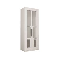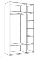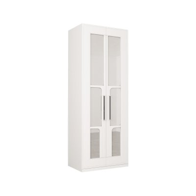Нестандартно и интересно решён декор двустворчатого шкафа. Зеркало накладывается изнутри фасада, проявляя таким образом сквозную ажурную фрезеровку.