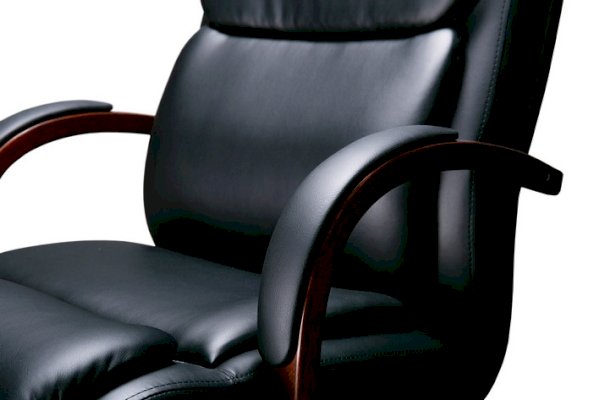 Кресло с высокой спинкой, с подлокотниками дугообразной не замкнутой формы с мягкими накладками обитыми в цвет кресла.