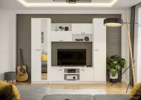 Гостиная состоит из бельевого шкафа, средней секции и платяного шкафа
