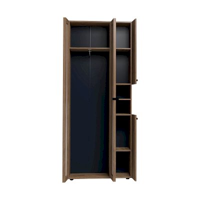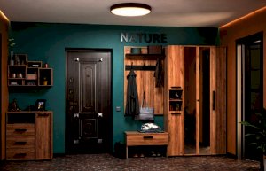 Nature 87 Шкаф для одежды и белья создаст все необходимые условия для хранения в прихожей верхней одежды и аксессуаров. В этом шкафу есть все необходимое для размещения верхней одежды: выдвижная штанга, верхняя полка, ряд регулируемых полок. Большая секция оснащена выдвижной штангой для развешивания пальто и курток на плечиках. Выдвижная штанга выдерживает вес до 10 кг. Один из зеркальных фасадов Контур открывается за ручку-петлю из черной экокожи, второй фасад - за раму. По желанию к модулю можно докупить Nature 94 Дополнительный модуль для Nature 87, который крепится под полку открытой ниши.