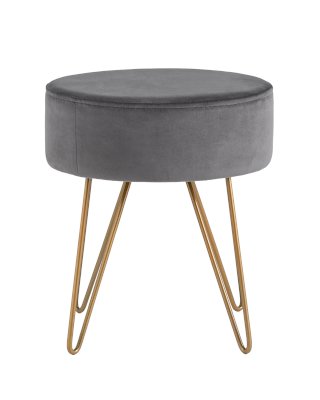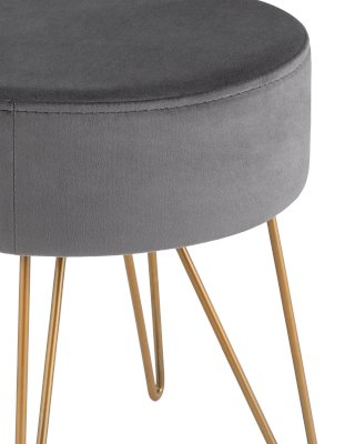 Компактный мягкий пуф на металлических ножках. Мягкая обивка выполнена из износостойкого велюра, тактильно приятный и долговечный материал. Изогнутые металлические ножки высотой 27 см дополняют дизайн и придают пуфику изящный вид. Подпятники в основании ножек делают пуф более устойчивым и предотвращают скольжение.