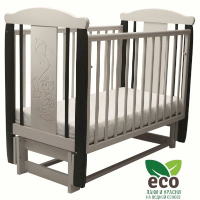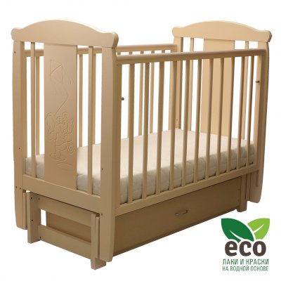 варианты цветовых решений Кроватка "Соня 05" имеет механизм качания продольный маятник. Механизм качания фиксируется. Возможен вариант кровати с ящиком.
