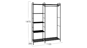 Новинка обладает лаконичным, стильным дизайном и представлена в универсальном черном цвете. Модулю присущи черты минимализма: открытость планировки, максимум простора и воздуха, что делает её идеальным решением для открытого хранения верхней, повседневной одежды и аксессуаров. Наша новинка- это базовое изделие, которое гармонично впишется в скандинавский стиль и направление лофт, а также ее  можно назвать классикой.