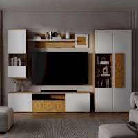 Пенал «Тиволи» ПН-01 - воплощение эстетики минимализма. Акцентная деталь данной модели – сочетание белого фасада и необычной вставки с фотопечатью, имитирующей древесный спил. На вместительных полках удобно хранить фотоальбомы, важные мелочи, аксессуары для гаджетов и книги.