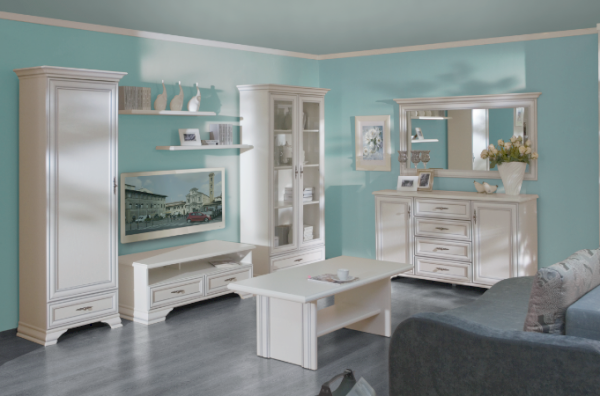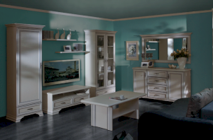 Кентаки - мебель классического стиля, отличающаяся природными цветами, отделкой фактурой, всегда актуально и востребована, она настолько универсальна, что без проблем впишется в любой современный дизайн. Стиль набора модульной мебели подчеркивается лакированной патинированной планкой в фасадах, карнизами - завершающим акцентом в зеркалах и высоких элементах набора, витиеватыми ручками.
