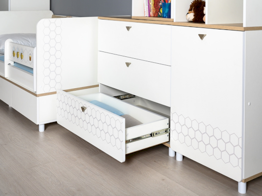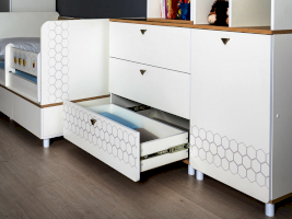 • Выдвижные ящики на шариковых направляющих полного выдвижения