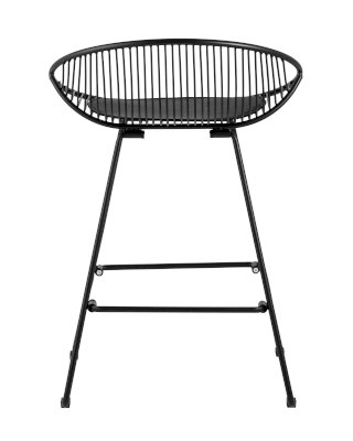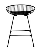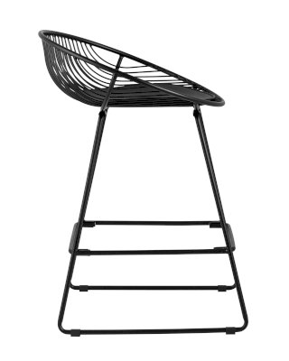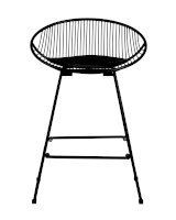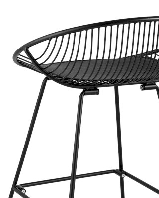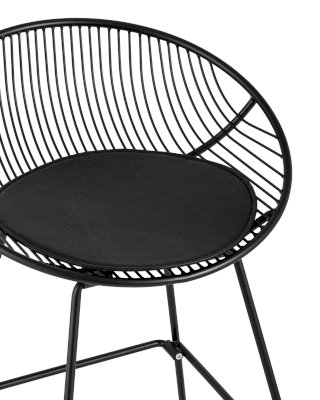 Необычный дизайн барного стула UFO станет акцентом интерьера кухни в современном стиле. Спинка и сидение выполнены из металлических прутьев черного цвета. Подушка изготовлена из черной экокожи. Ножки выполнены из металла в тон сидения и имеют подставки, которые предотвращают скольжение стула по поверхности пола.