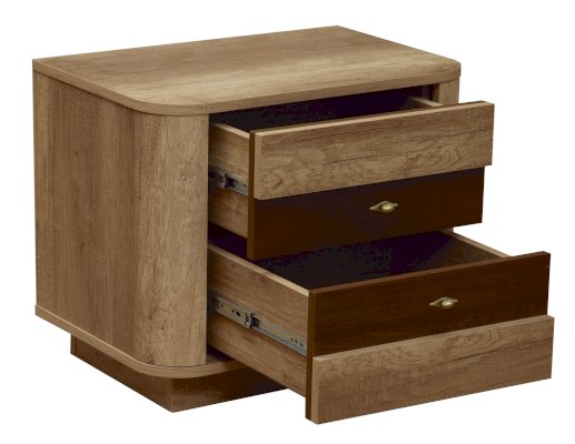 Тумбочка стоит на закрытом цоколе – это придает дополнительную устойчивость и предохранят от пыли и мусора. Все четыре угла закрыты полукруглым профилем – визитной карточкой коллекции.