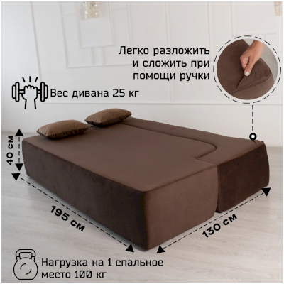 За счет того, что диван без каркаса и механизма, его легко самостоятельно перевезти, например на дачу. И в отличие от всех стандартных диванов, он не требует сборки. Такого набора достоинств нет ни у одного обычного дивана!