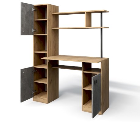 Пенал (дополнительная секция) превращает простой функциональный стол в полноценную рабочую зону, он вмещает закрытые полки для хранения документов и две ниши под дополнительную оргтехнику.