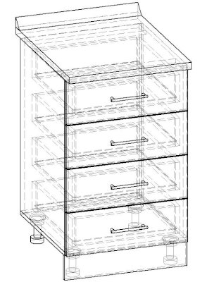 Пенал однодверный 4 ящика 600 КП.002.600-02