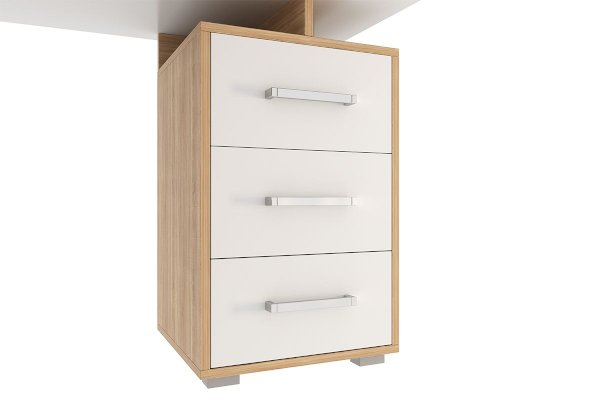Угловой компьютерный стол «Лайт-2» может быть дополнен функциональной надстройкой или стеллажом той же серии. Главными особенностями данного стола являются радиусные элементы и утолщенная столешница – 22 мм, а также возможность собрать тумбу в одном из двух предусмотренных положений – прямом или диагональном. Сочетание удобства, лаконичности и простоты – идеальное решение для Вашего рабочего места.