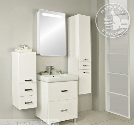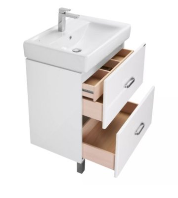 Современная лаконичная модель тумбы AQUATON Америна 70 Н шириной 70 см с двумя внешними ящиками и одним встроенным выполнена в белоснежном глянцевом цвете. Корпус изготовлен из влагостойкой ЛДСП, а фасад - из высококачественной МДФ. Тумбы данной модификации устанавливаются на ножки. Направляющие нижнего крепежа обеспечивают жесткое и надежное крепление ящиков, а встроенные доводчики гарантируют их бесшумное и плавное закрывание. Дополнительно организовано нижнее подключение труб водоснабжения и канализации. Корпус и фасады покрыты полиэфирной краской ультрафиолетового отверждения, обеспечивающей дополнительную защиту от влаги.