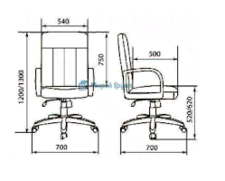 Кресло с высокой спинкой, с подлокотниками прямоугольной замкнутой формы с мягкими накладками обитыми в цвет кресла.