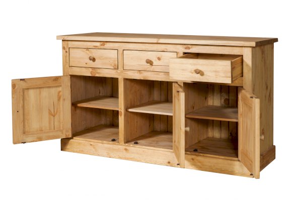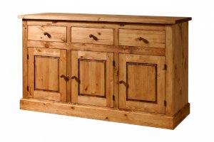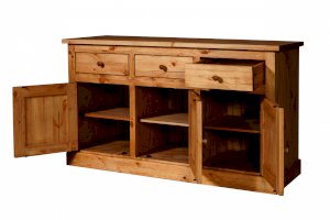 Тумба KLMB33 - 3 распашных дверки. За каждой дверкой полка, 3 выдвижных ящика на деревянных полозьях.