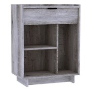 Тумба с ящиком ФЛЕКС 27 в светлом цвете Дуб Шавиниган выполнена из ЛДСП класса эмиссии Е1 толщиной 16 мм. Напольная тумба с выдвижным ящиком на шариковых направляющих и открытыми нишами разного размера. Бортики по краям столешницы предотвратят падение предметов. Предусмотрена универсальная сборка тумбы.