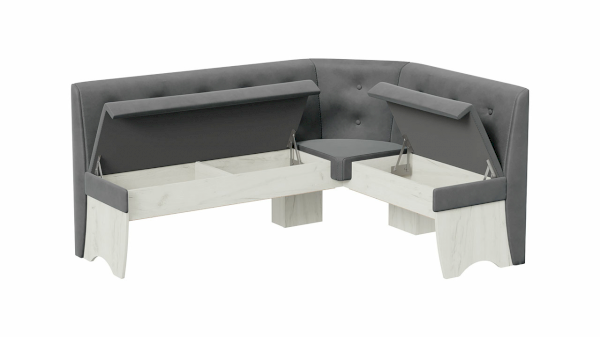 Угловой комплект мебели помогает оптимально использовать пространство. Сборка скамьи в этом наборе возможна как на левую, так и на правую сторону. Поэтому уголок «Барселона» станет хорошим вариантом для приобретения, ведь расположить его с легкостью можно будет в любой планировке. Благодаря наличию ящиков под обоими сиденьями, данная модель создает дополнительную возможность для хранения различных вещей. За счет эргономичности высвобождается масса пространства, которое отныне заполнит невероятный комфорт и умиротворенность.