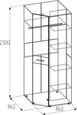 • Размер:ШхВхГ 862 х 2300 х 862 мм