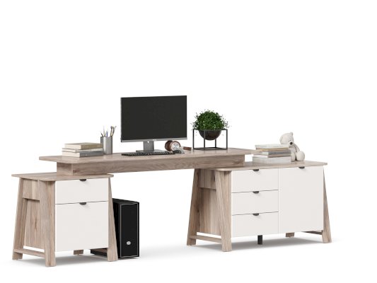 Сборная столешница с подстольем устанавливается с фиксацией на два модуля: