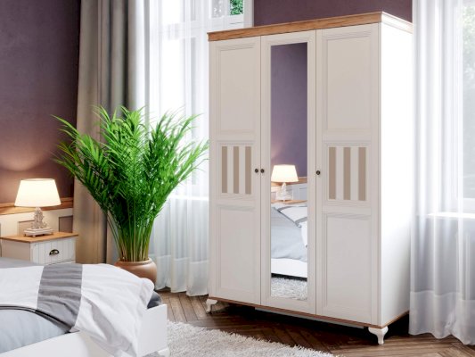 Шкаф трехстворчатый с зеркальной и глухими дверями Вилладжио 680090
