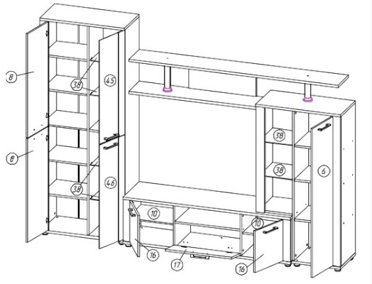 Стенка состоит из трех конструкционных элементов следующих габаритов: