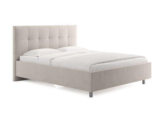 Лаконичная интерьерная кровать с изголовьем, украшенным декоративной строчкой. Модель изготовлена из ДСП. Обратная сторона изголовья обита темно-серым спандбондом, но, при желании, её можно выполнить из основного обивочного материала. В комплект кровати входит кроватное основание. Каркас основания выполнен из металла, ламели - из берёзы. При необходимости в комплект можно включить подъемный механизм с бельевым ящиком, который существенно увеличит объем хранения вещей, а так же позволит легко производить уборку пыли под кроватью.