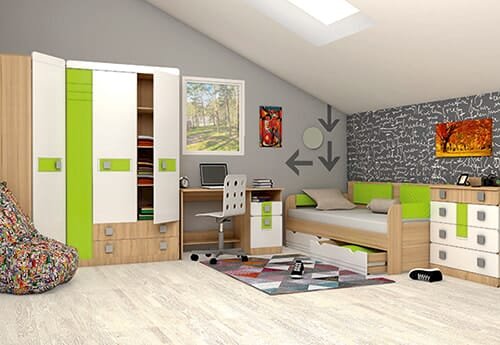 Мебель для детей «Стиль», выполненная в цвете «Лайм» подойдет как для младших, так и для старших школьников. Корпуса детской «Стиль» выполнены из ЛДСП толщиной 16 и 22 мм. Торцы обработаны кромкой ПВХ. Фасады выполнены из плиты МДФ, покрытых глянцевой пленкой белого цвета. Декоративные элементы на фасадах выполнены из МДФ с глянцевой пленкой ПВХ, по периметру подчеркнуты фрезеровкой. Все петли на фасадах с доводчиками. Направляющие на выкатных ящиках - шариковые, полного выдвижения. Мякгие элементы, скругленные углы, пластиковые ручки - все служит безопасности ребенка и придаёт эстетичный внешний вид.