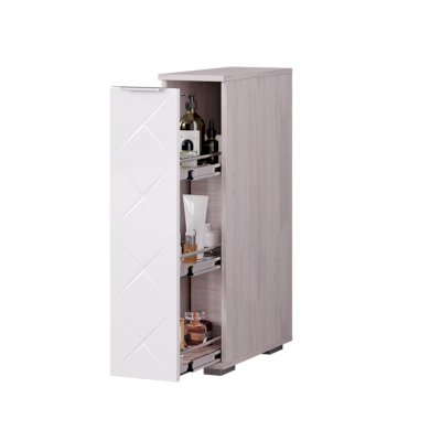 Тумба Кимберли – красивый и функциональный предмет интерьера. Оснащена выдвижной нишей, в которой можно хранить косметику, средства по уходу за собой или другие необходимые вещи. Фасад изделия выполнен в белом глянце и имеет стильную гравировку. Тумба может использоваться как самостоятельно, так и дополнить косметический стол из одноименной модульной коллекции.