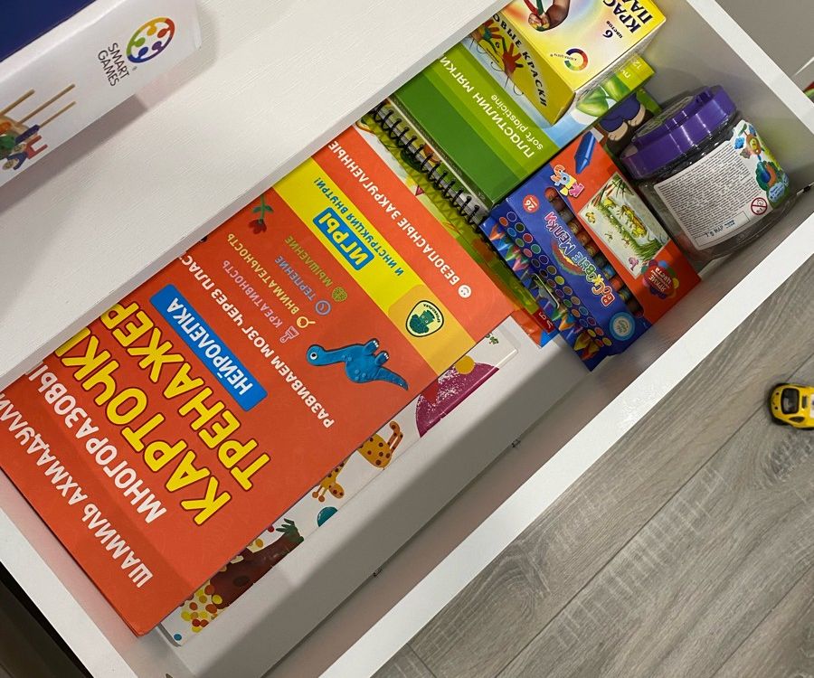 лаконичный, белый, с ящиками, высокий и глубокий, удобен для хранения и расстановки книг плюс хранение других вещей в комнате. прост в сборке - собирается за час максимум