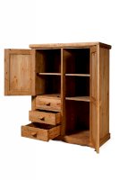 За дверкой слева полка, за дверкой справа 2 полки, 3 выдвижных ящика.