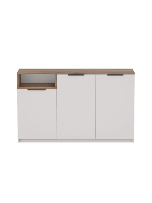 Комод оборудован 3 распашными дверями и открытой полкой. Его можно использовать для хранения различных вещей: одежды, нижнего и постельного белья, документов и других принадлежностей. Чарльз – неглубокая, зато длинная (широкая) вместительная модель, которая подойдёт в небольшую прихожую (коридор), спальню, зал или для детей и даже в маленькие офисные помещения. Комод можно дополнить другими изделиями из этой серии.