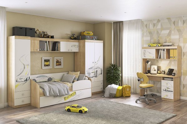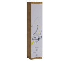 Вместительный шкаф «Форсаж» – мечта каждого мальчика. Штанга для одежды и 2-а выдвижных ящика для белья - отличное решение для детской. Эффектный принтерный рисунок на фасадах выдержан в общем стилистическом решении. Рисунок устойчив к истиранию и ультрафиолету.